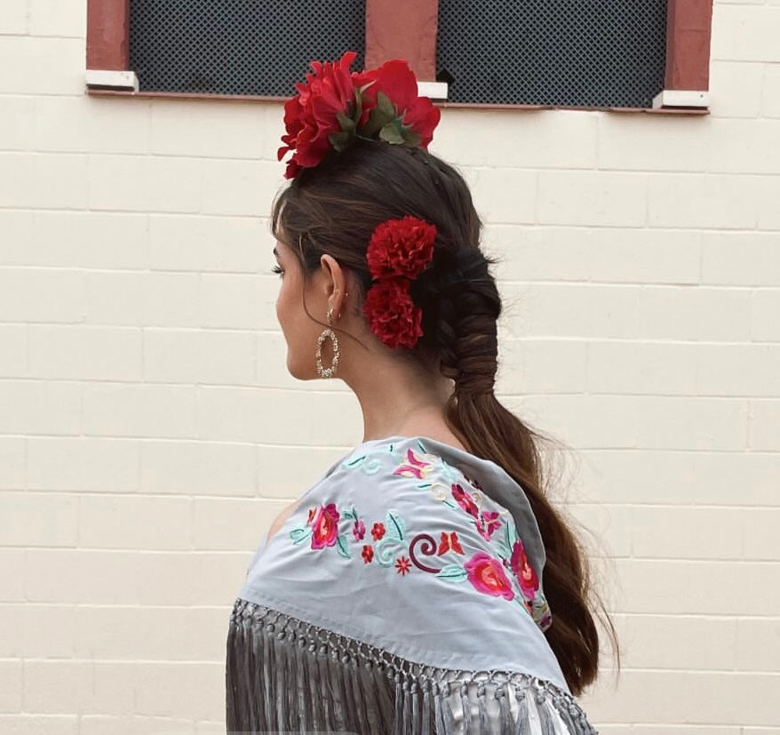 Una cuidada selección de accesorios de Flamenca que realzan la belleza de cada detalle. Mantoncillos bordados a mano con hilo de seda. Piezas únicas que reflejan el arte y el mimo de la tradición.