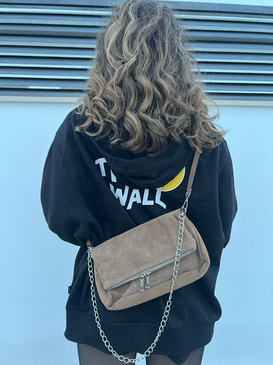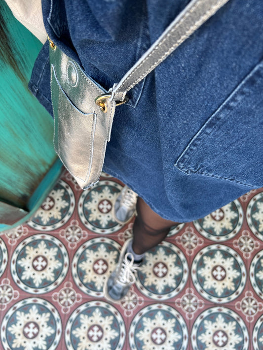 BANDOLERA PARA MÓVIL PLATA PIEL