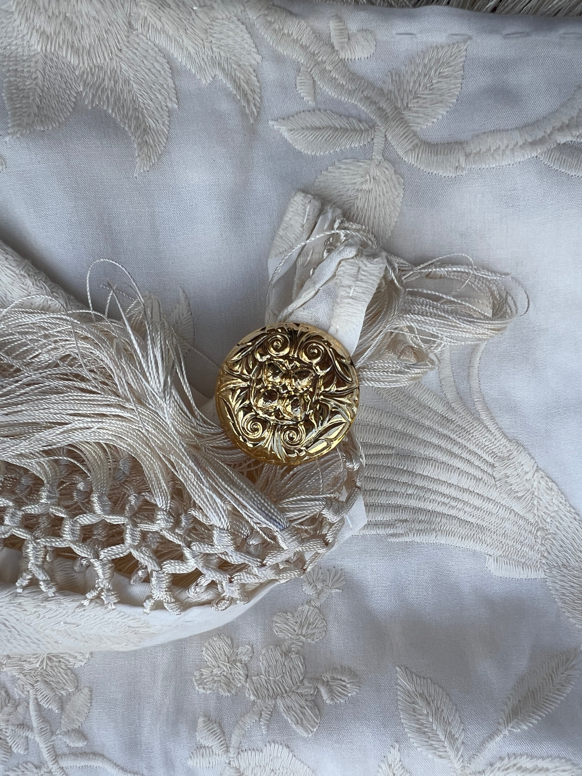 Anillo para mantoncillo con una elegante base metálica de latón chapada en oro.