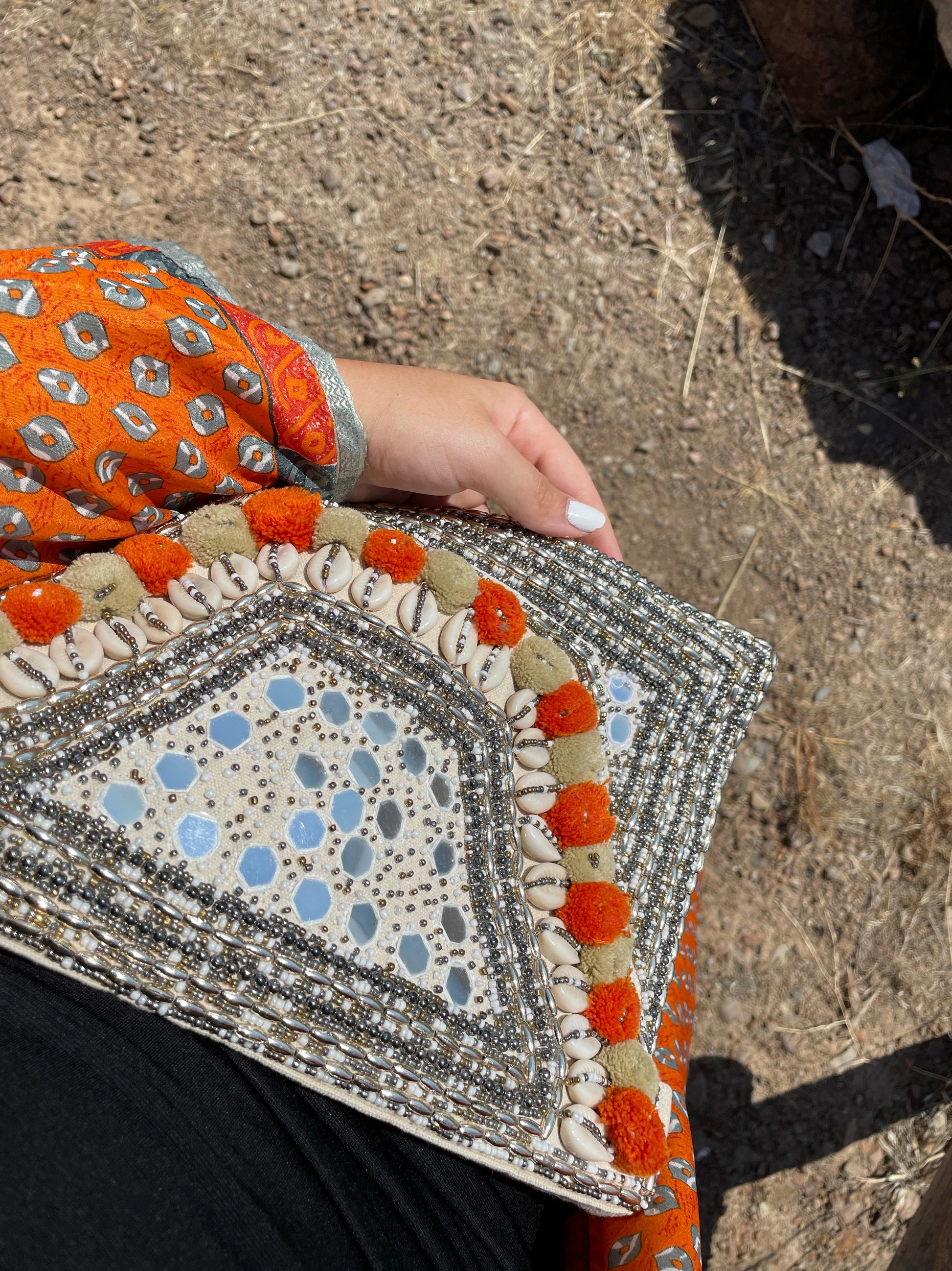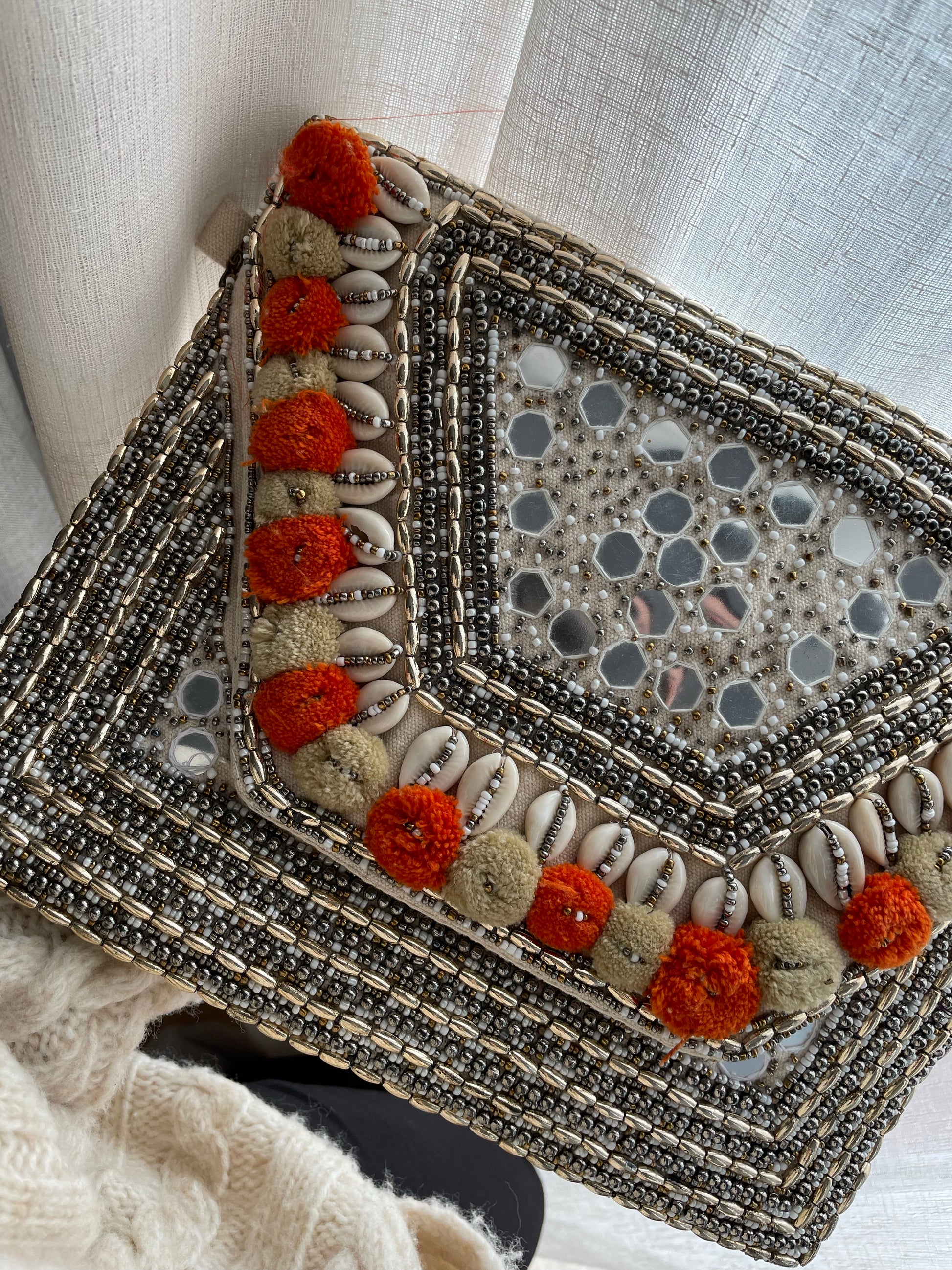 Elaborado artesanalmente con algodón natural y múltiples cuentas, conchas y abalorios.
