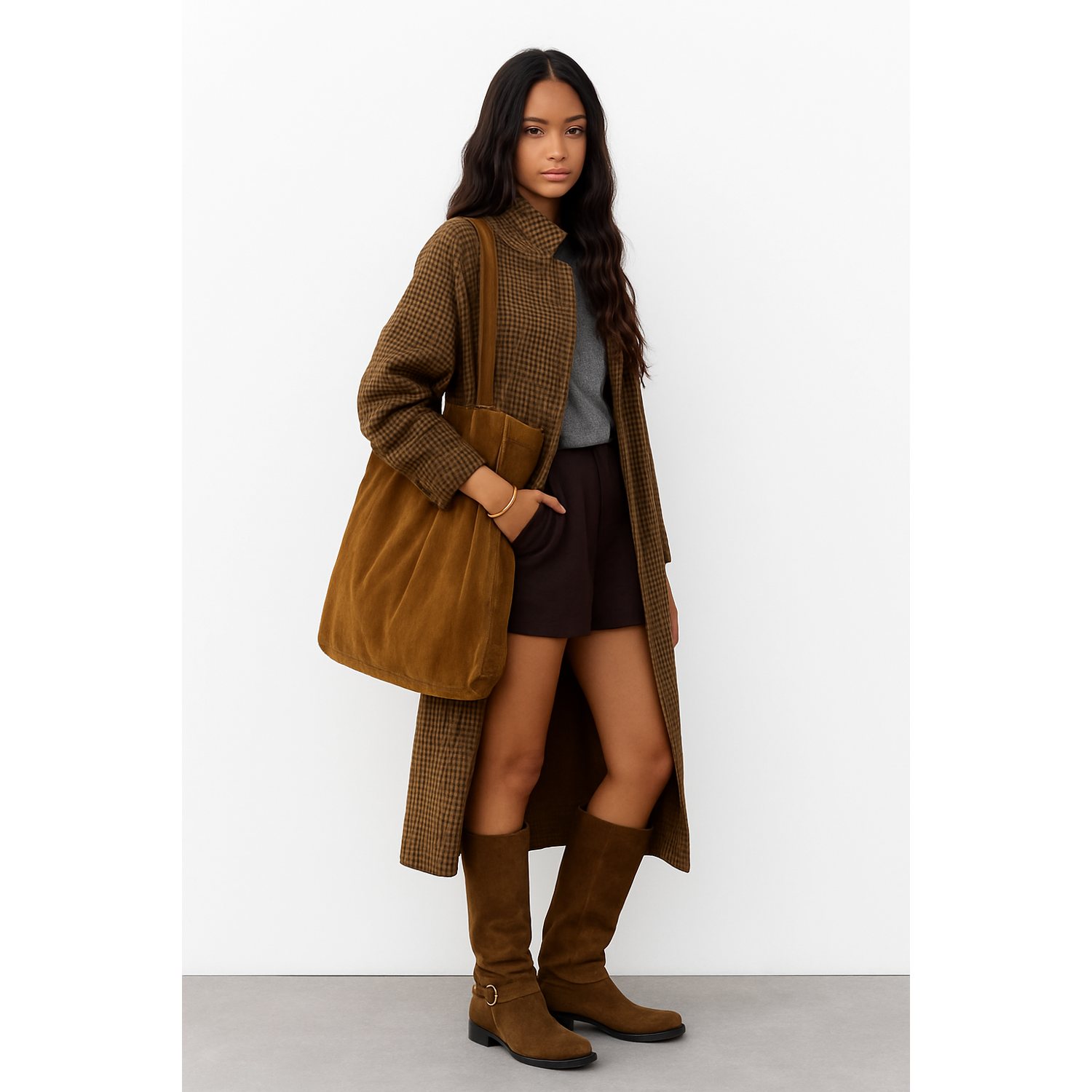Bolso shopper liso. Tejido de loneta. Bolsillo interior. Cierre con botón.