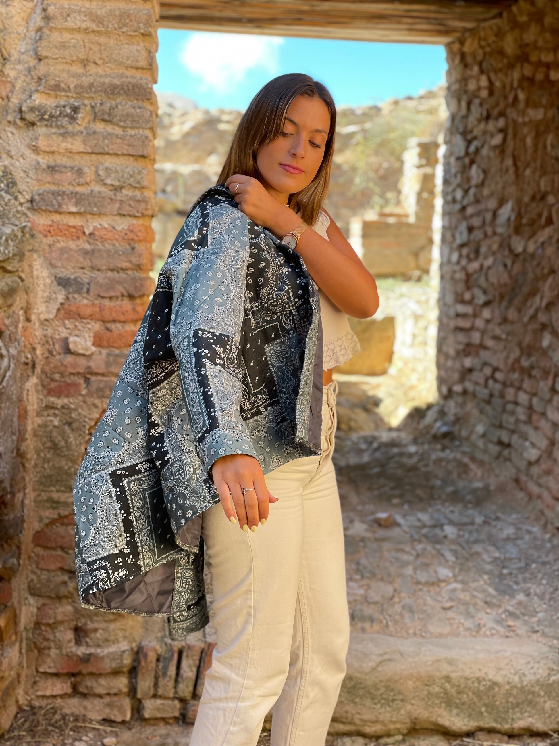 Chaqueta acolchada con diseño estampado estampada. Cierre delantero con botones.