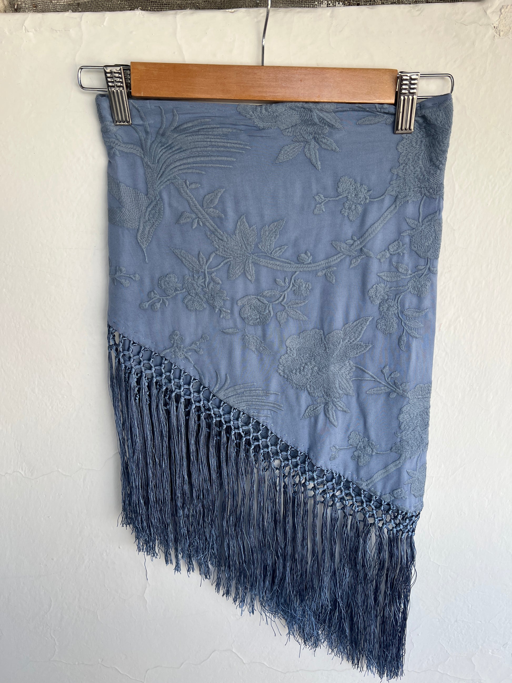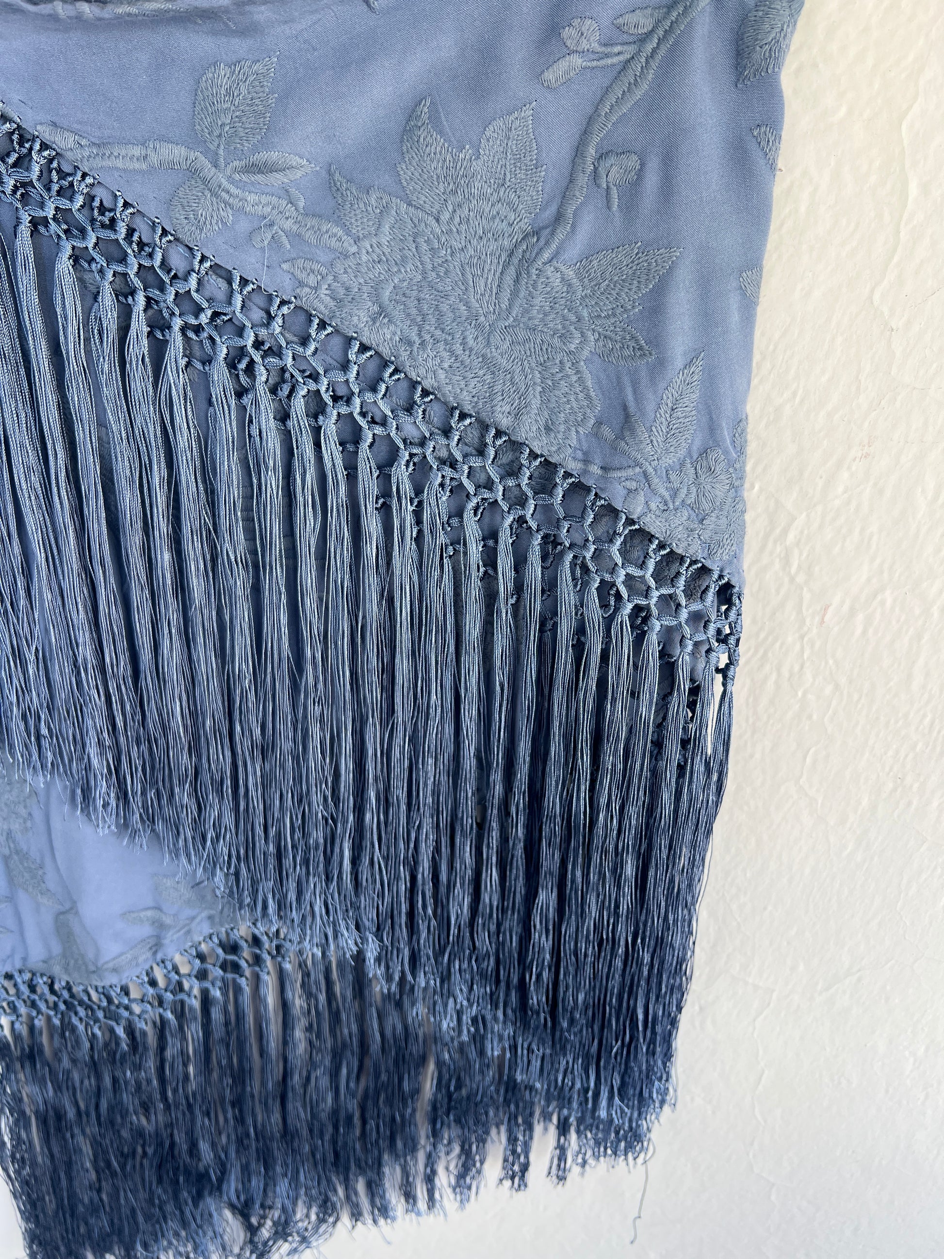 Al ser hecho a mano, puede haber pequeñas diferencias en los tonos del color azul y en los bordados. Esto hace que cada mantoncillo sea único y tenga su propia personalidad.