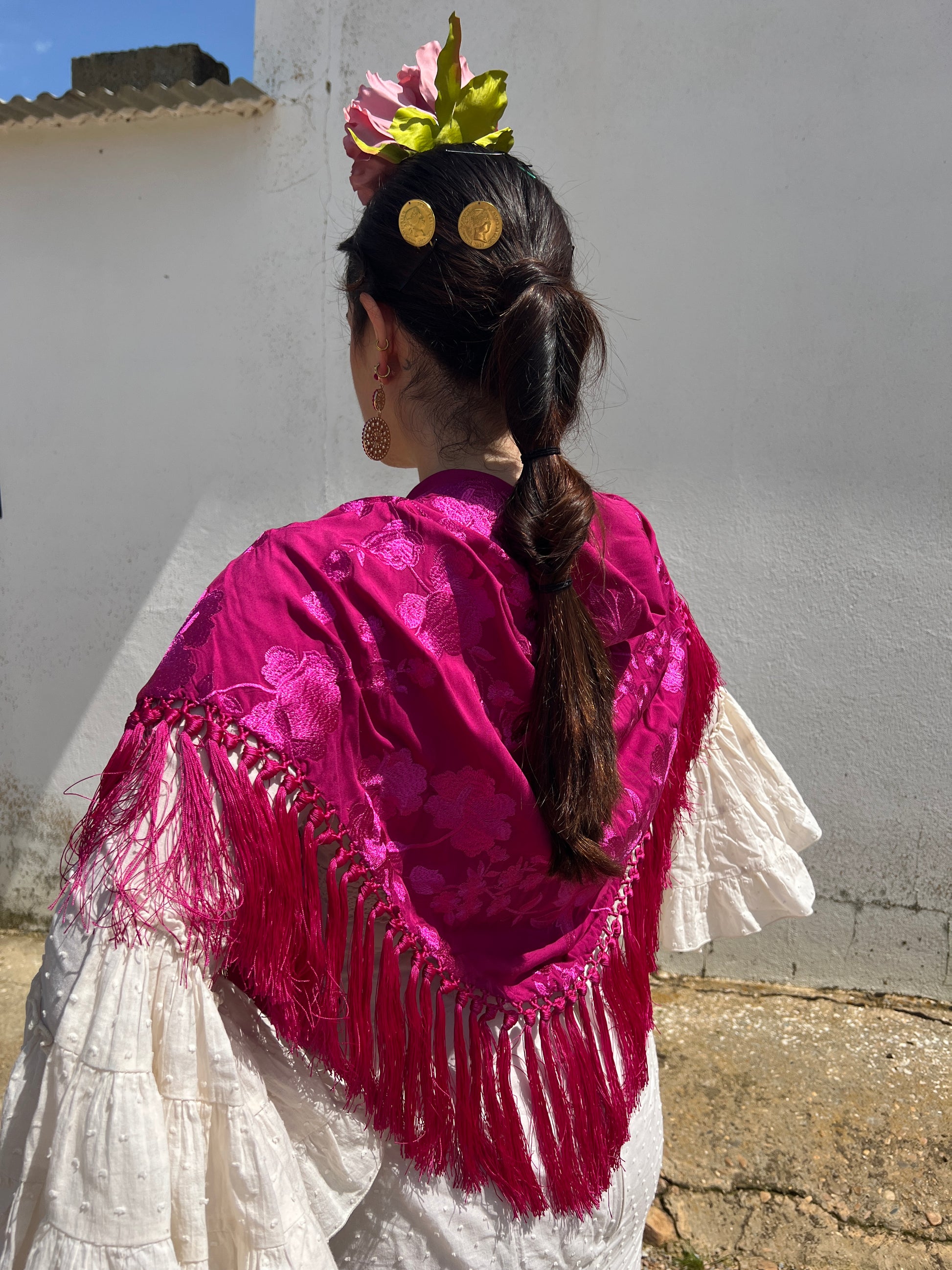 Al ser hecho a mano, puede haber pequeñas diferencias en los tonos del color marfil y en los bordados. Esto hace que cada mantoncillo sea único y tenga su propia personalidad.