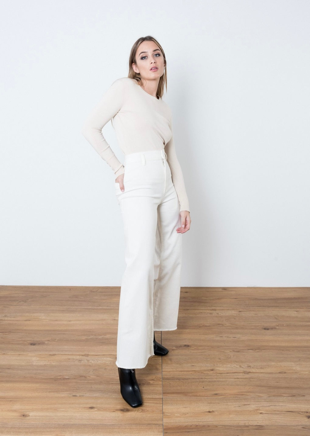 Jeans de tiro alto con bolsillo trasero. Cierre frontal con cremallera y botón.